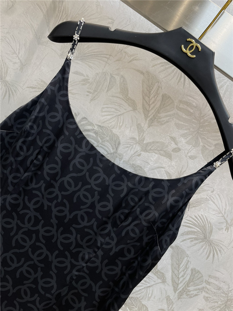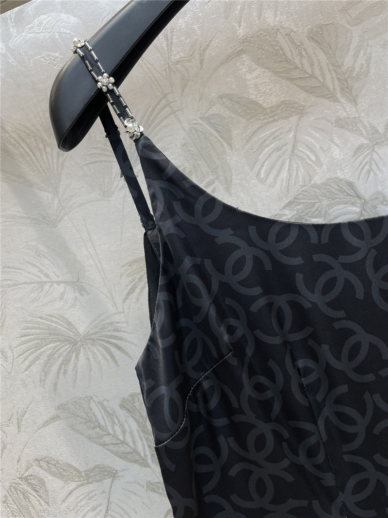 Chanel black printed dress with straps