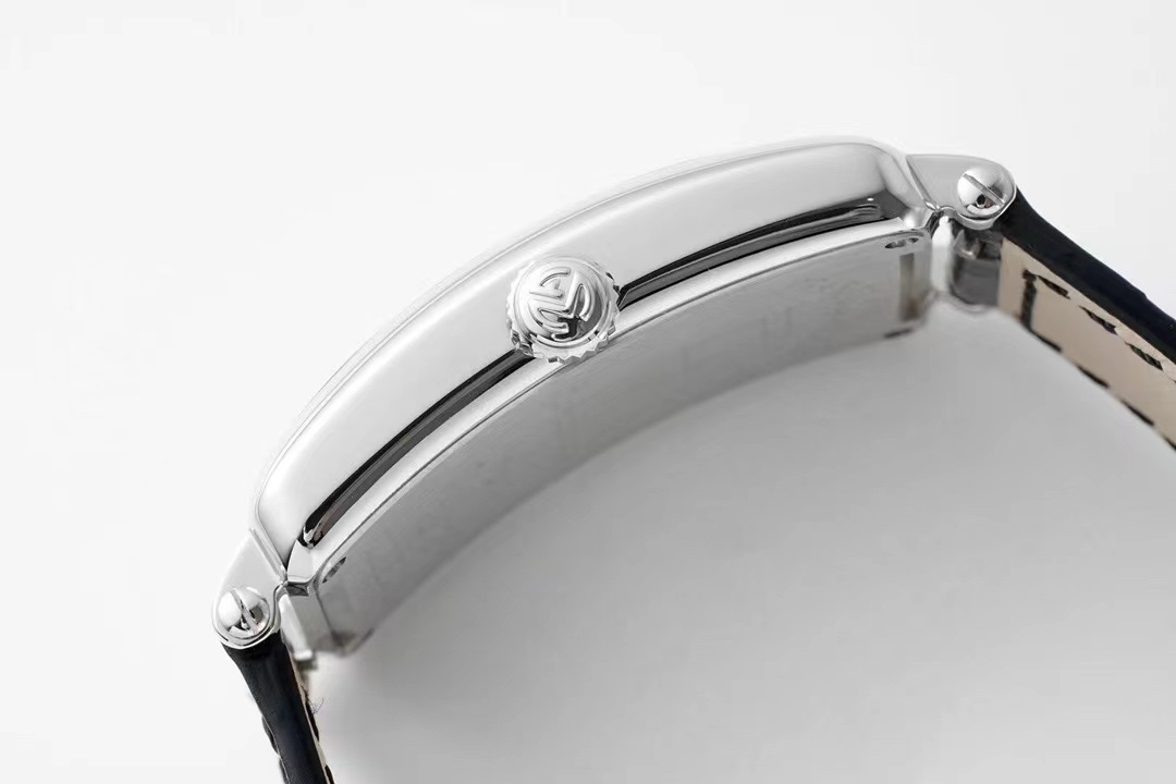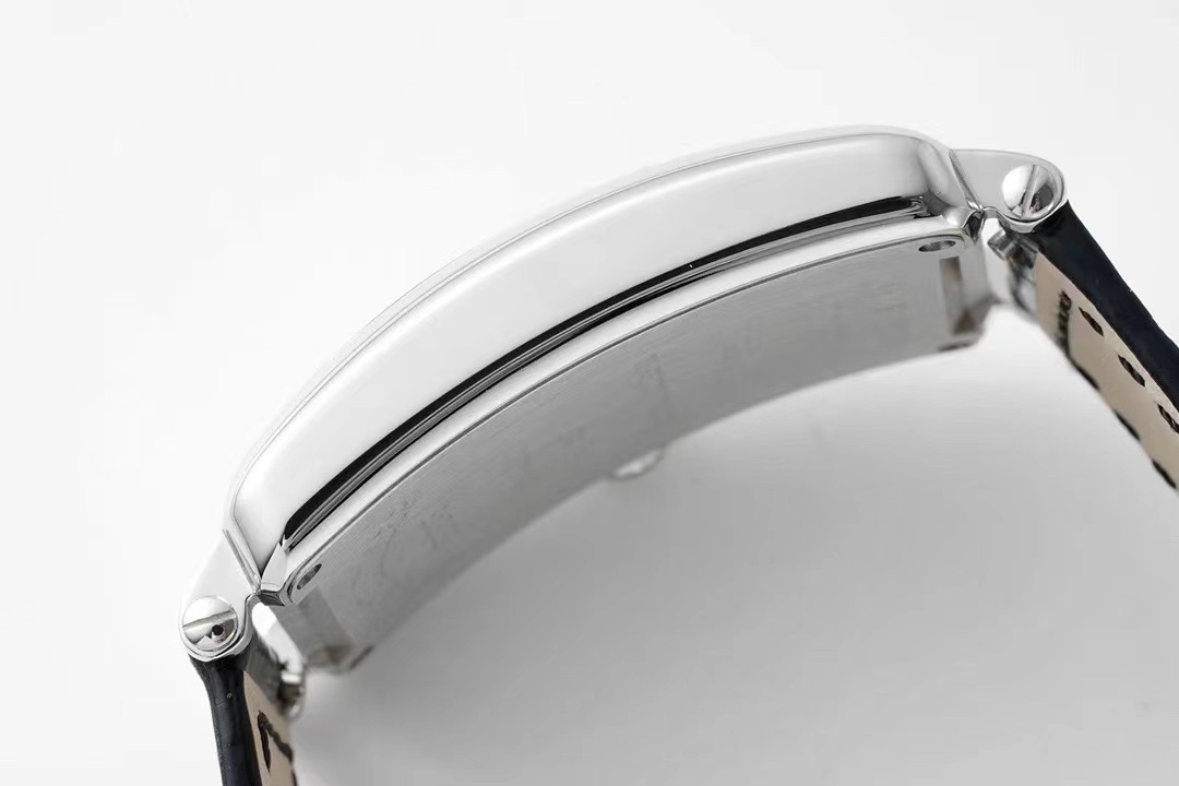 The three-dimensional Arabic numeral hour markers are made of rhodium-plated stainless steel, with chamfered and polished surfaces that fit the arched dial. The hands are also rhodium-plated on the arched surfaces. It is equipped with a Cal.751 movement, and the movement is the same as the original imported Swiss quartz movement.