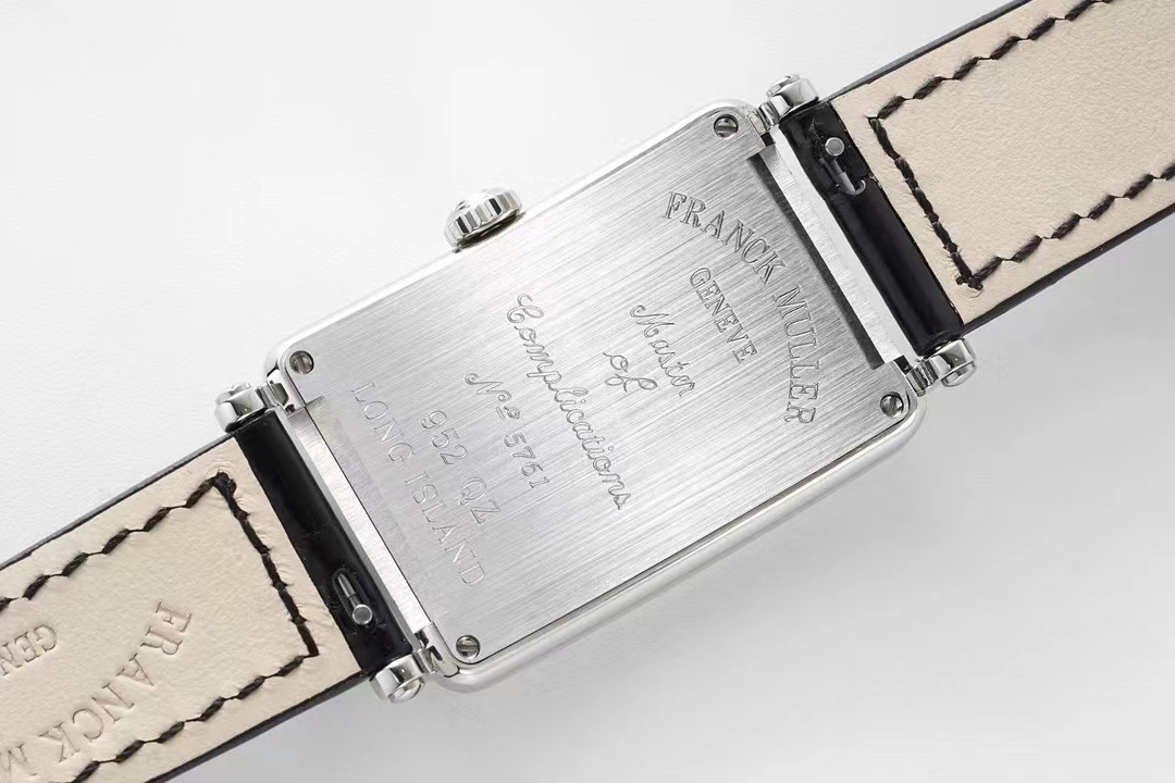 The rectangular case is made of 316 stainless steel, processed by CNC and polished. The case back is seamlessly joined with the case body (in most FM watches in the market, there are large gaps between the case back and the case, or the case back and the case are not flush. Only through CNC processing can the precision of the fit between the case and the case back be ensured). The case back has a fine brushed finish, with clear engraved fonts and a smooth bottom surface of the fonts. For the genuine products, the models with diamonds and those without diamonds processed by the foundry are not of the same model (unlike other manufacturers that are too lazy and make all the case backs the same).